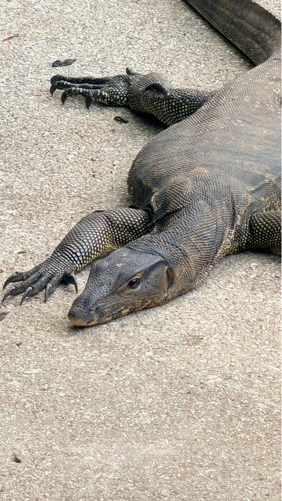 Lizard about 1 metre lying across the footpath